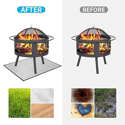 And that solution is fire pit protective mat. This includes a fire pit lid, fire pit cover, lava stone, beautiful antique brass finish, and 58,000 btus. No more outdoor gatherings after a while. Throw it in your trunk for smokeless fires at the campground, beach, or a friend's place. So, you just need a permanent solution.